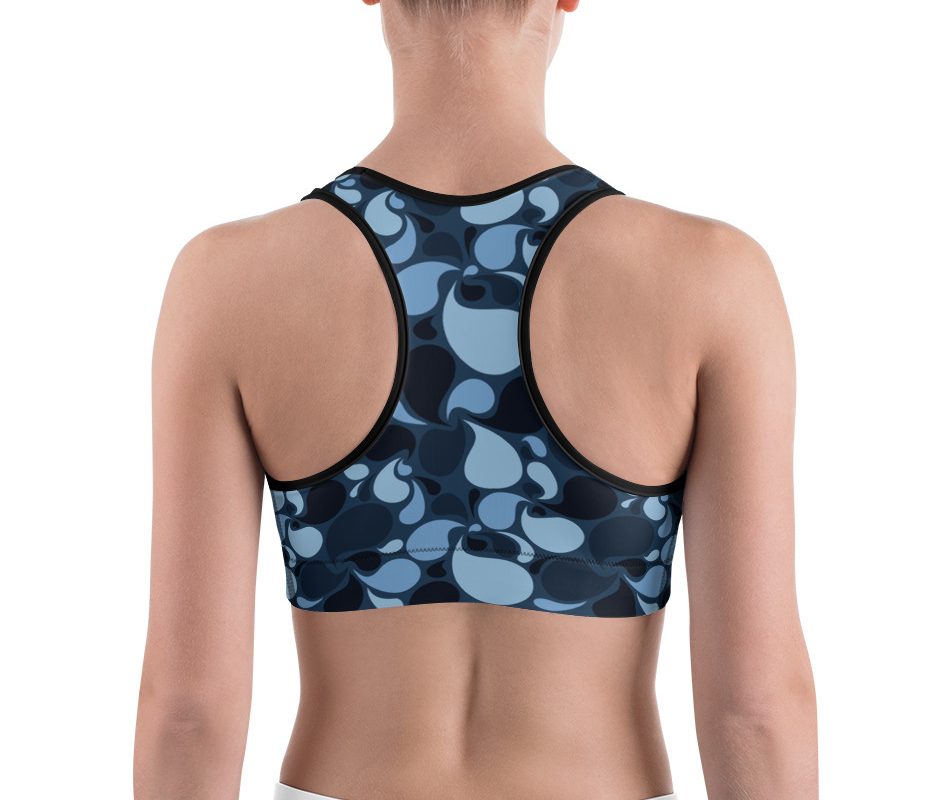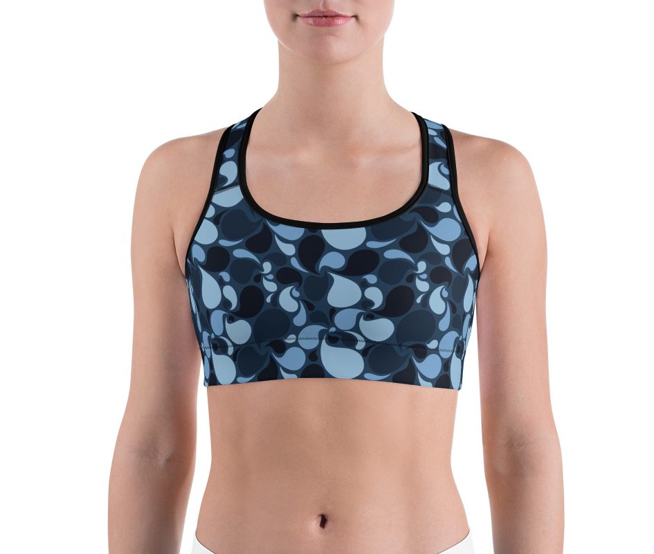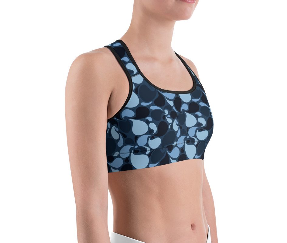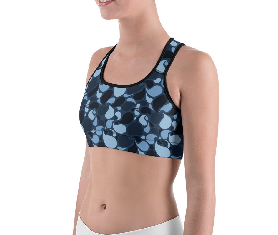 This gorgeous sports bra is made from moisture-wicking material that stays dry during low and medium intensity workouts. The bra has support material in the shoulder straps, double layer front, and a wide elastic band to ensure constant support.