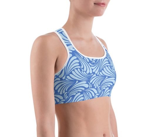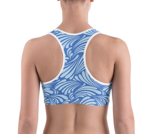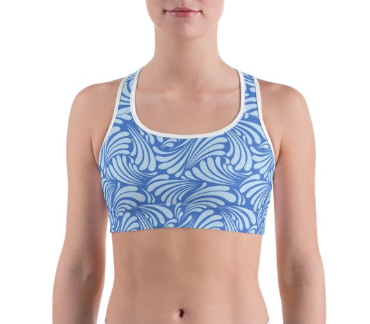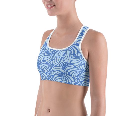 This gorgeous sports bra is made from moisture-wicking material that stays dry during low and medium intensity workouts. The bra has support material in the shoulder straps, double layer front, and a wide elastic band to ensure constant support.