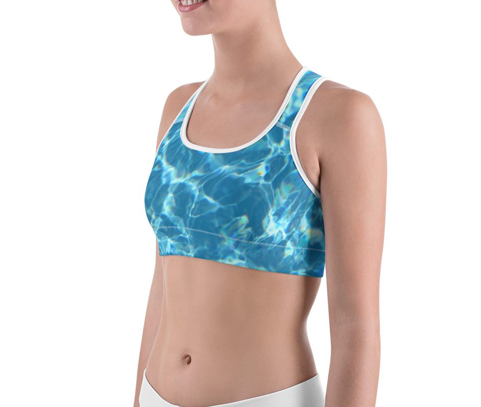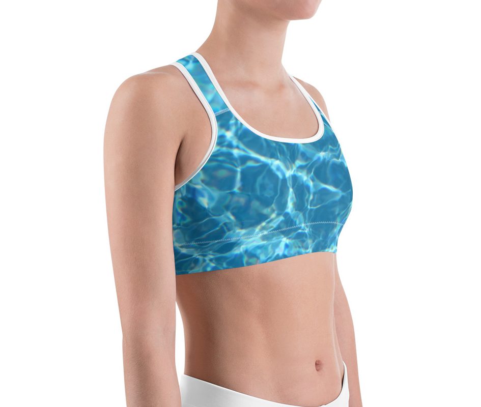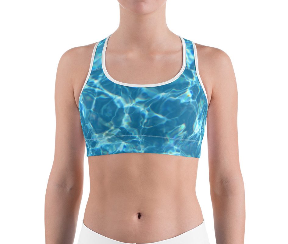 This gorgeous sports bra is made from moisture-wicking material that stays dry during low and medium intensity workouts. The bra has support material in the shoulder straps, double layer front, and a wide elastic band to ensure constant support.